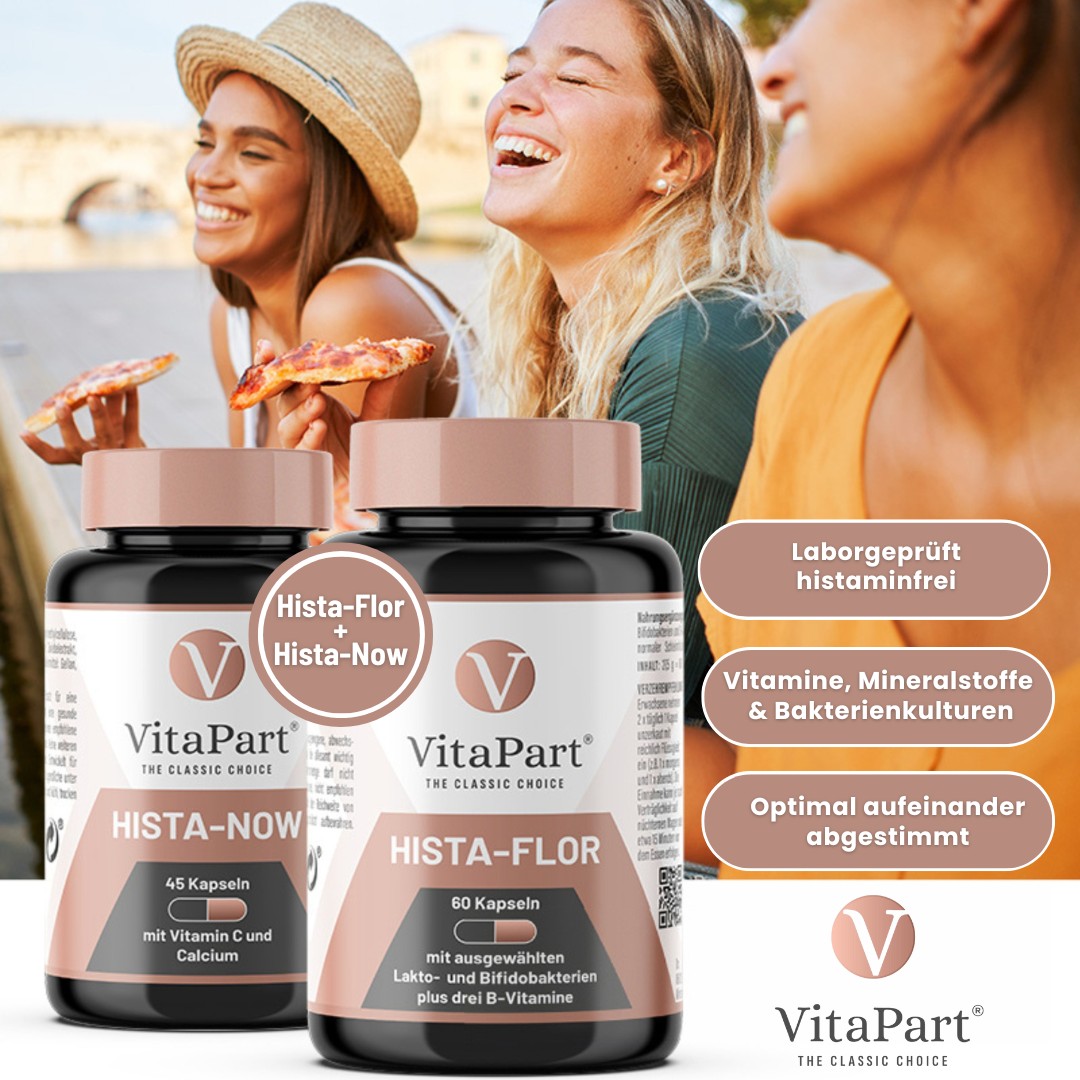 Hista-Flor ist ein Premium-Nahrungsergänzungsmittel mit einer speziellen Kombination aus ausgewählten Bakterienstämmen und drei B-Vitaminen. Es ergänzt eine histaminarme Ernährung dauerhaft.