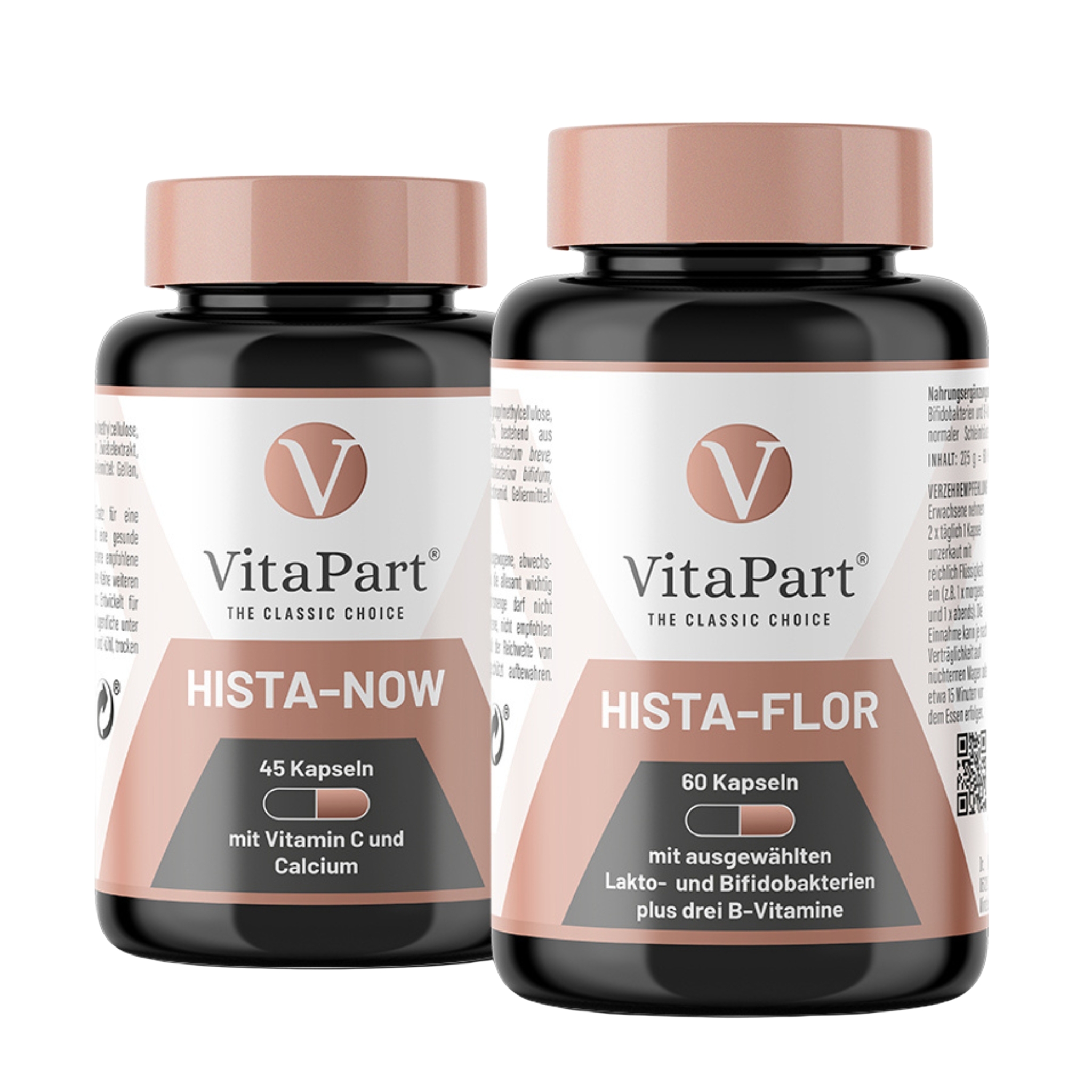 Hista-Flor: 60 Kapseln pro Packung (Gewicht: 27,5 g) | 1270,90 € / 1kg. Hista-Now: 45 Kapseln pro Packung (Gewicht: 29,3 g) | 953,93 € / 1kg. Hista-Flor & Hista-Now im 2er-Vorteilspack: 105 Kapseln pro Packung (Gewicht: 56,8 g) | 1019,37 € / 1kg.