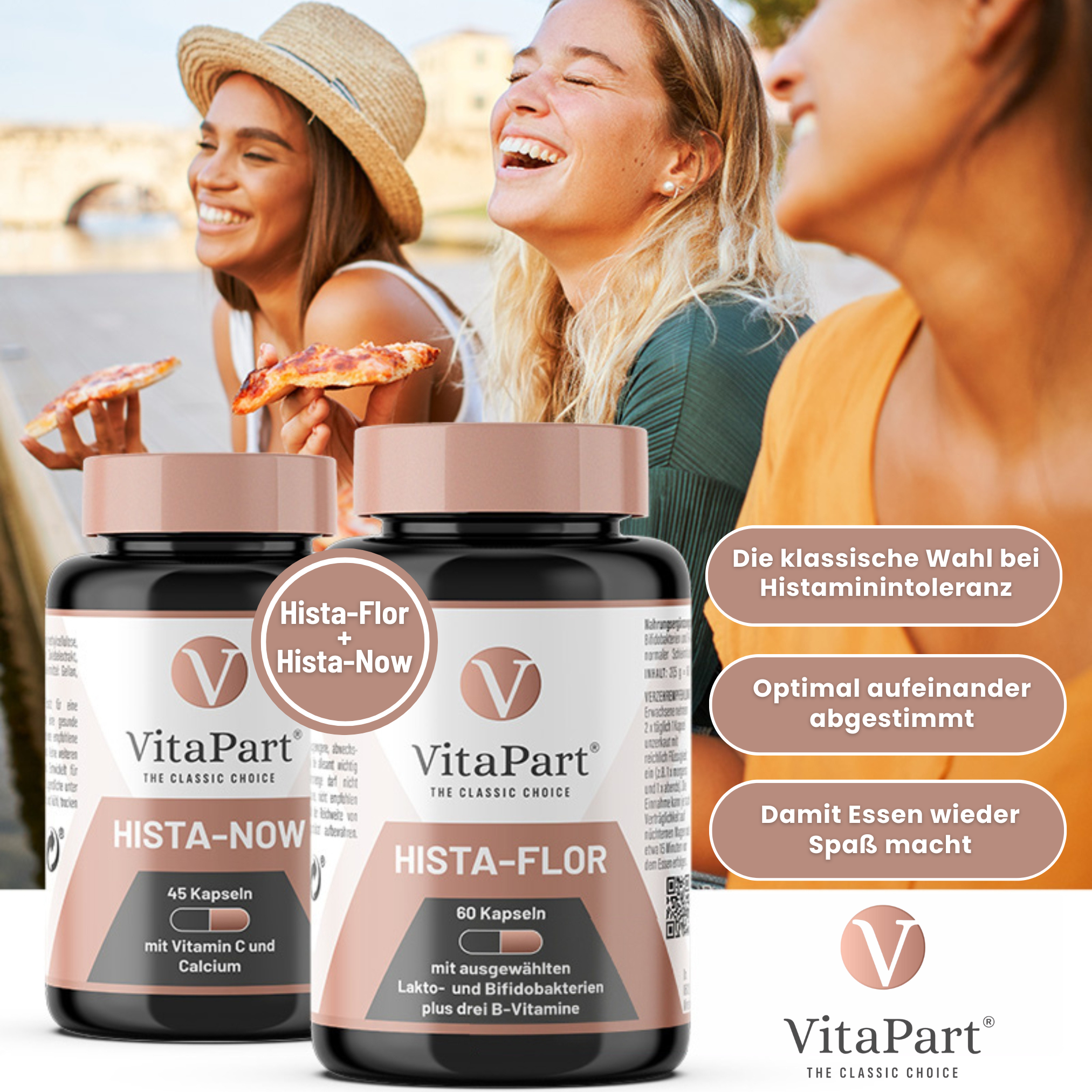 Alle Infos zu Produktvorteilen, Zutaten, Einnahmeempfehlungen und Menge der Inhaltsstoffe findest Du hier: Hista-Now und Hista-Flor